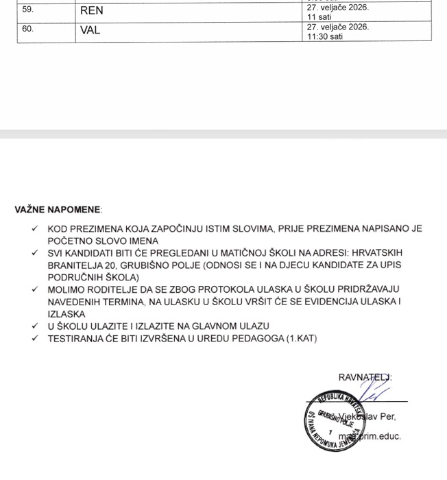 Više informacija možete pronaći u dokumentu: Plan upisa djece u prvi razred osnovne škole za školsku godinu 2026./2027.